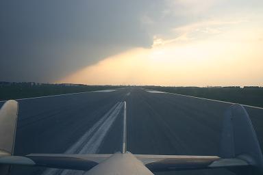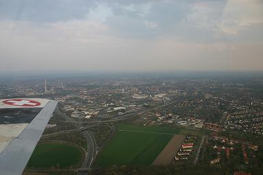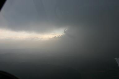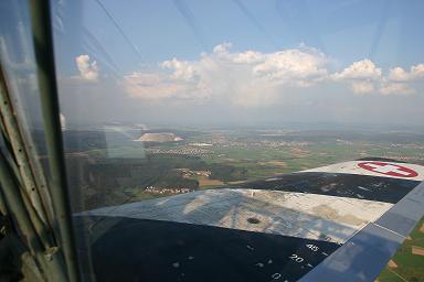 Half an hour after Berni and Isabel had departed towards Braunschweig we took off too. East of Frankfurt we hit a front that nearly forced us to turn back. Luckily for us however it was rush hour on the Autobahn so we managed to cross the front by just following the lines of head- and taillights, flying relatively low… On the picture below the flying directions is left to right…