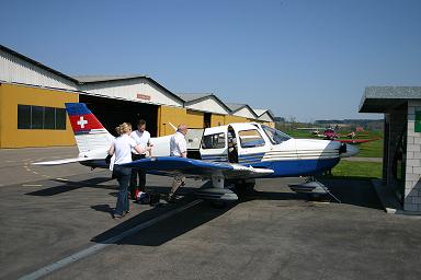 To travel from Lommis (LSZT) to Bremgarten (EDTG), as well as to return from Braunschweig (EDVE) to Lommis we used an Archer II, which was flown by Bernhard (see also Italy 2006) and Isabel, two fellow pilots form our club in Lommis.